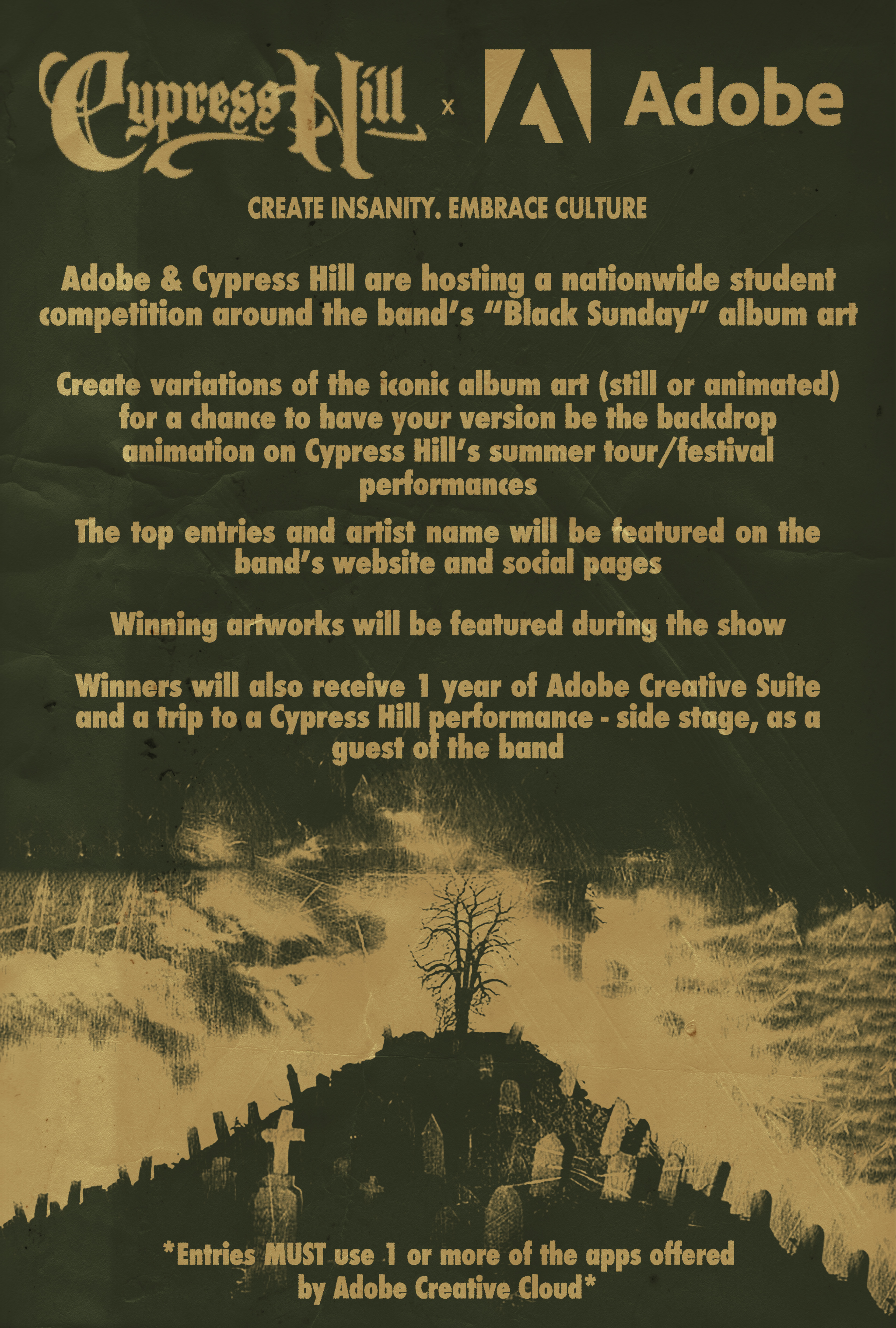 Adobe and Cypress Hill hosted a nationwide student competition around the band’s "Black Sunday" Album art.